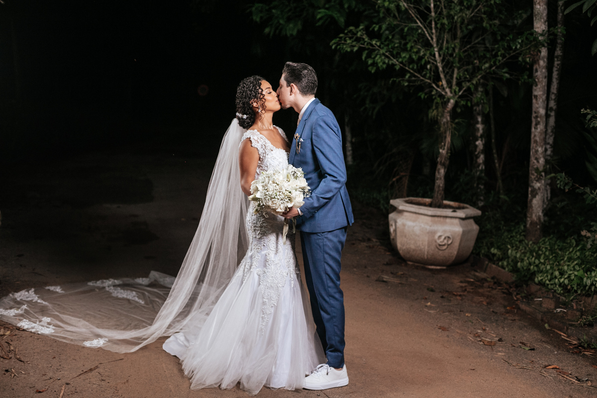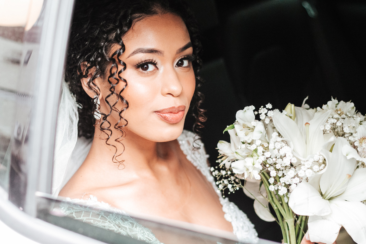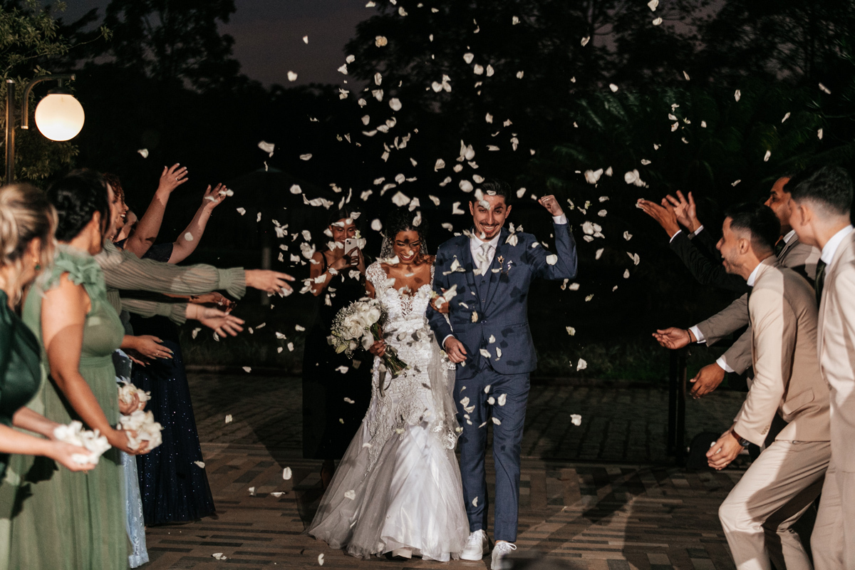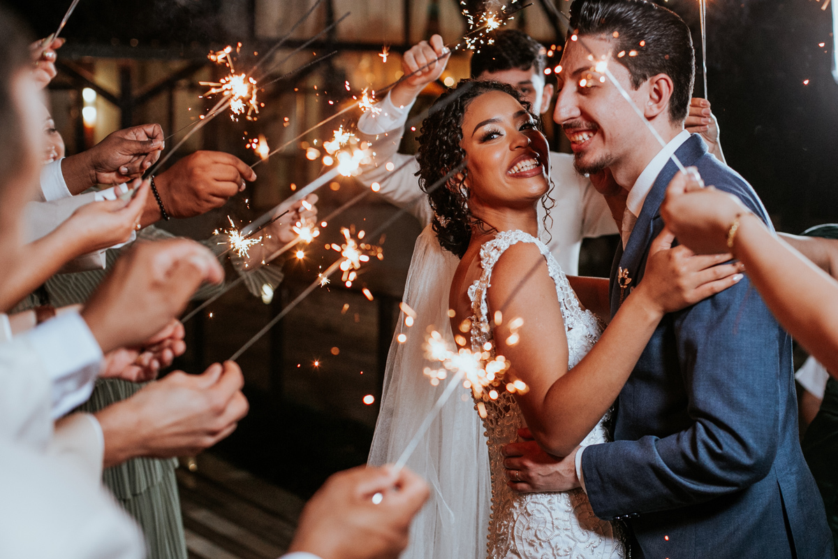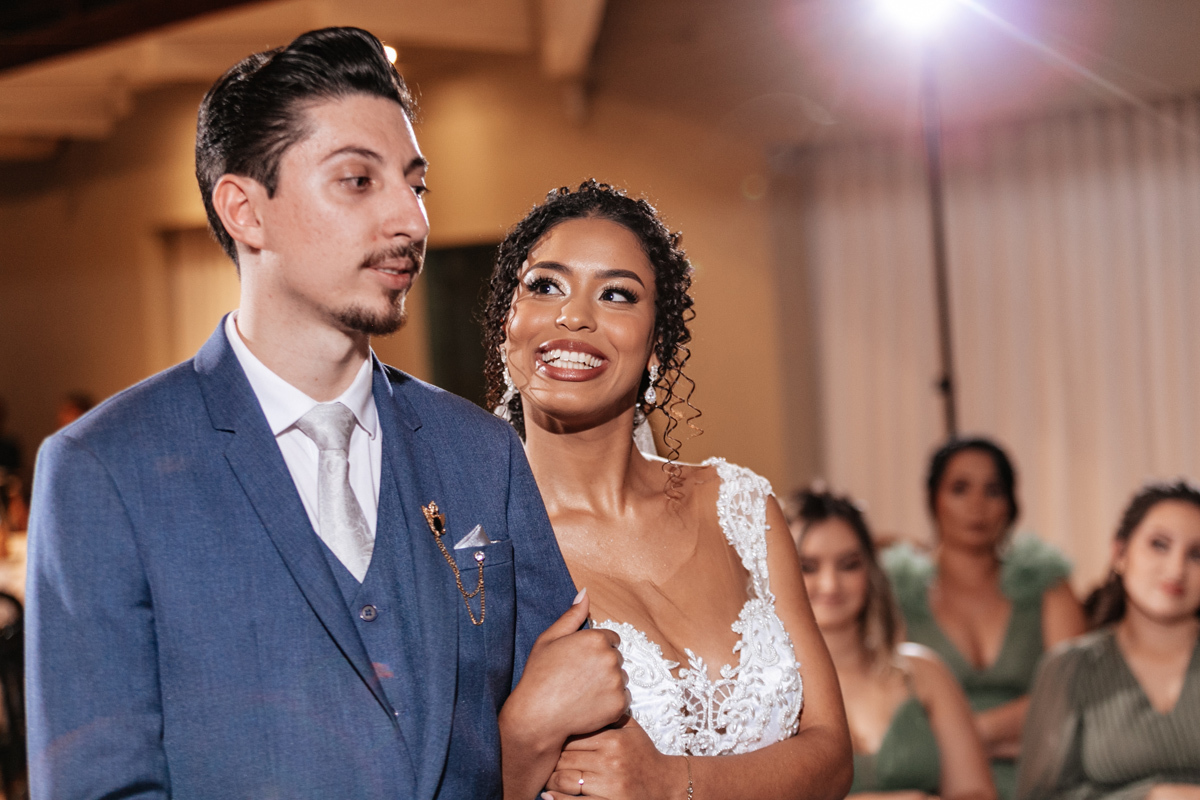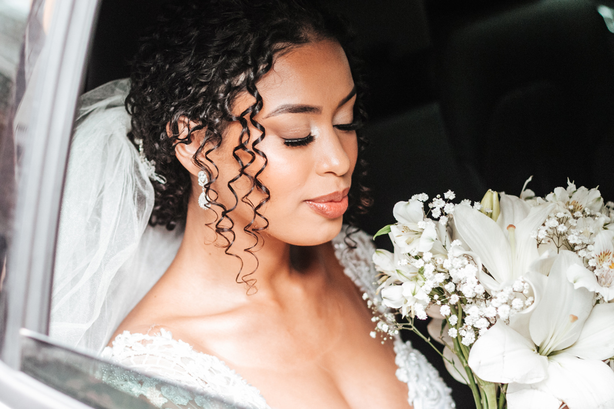 Um momento de pura felicidade, cheio de amor e ternura de quem acaba de realizar o sonho de casar, mostrando a alegria que transborda em seus sorrisos.