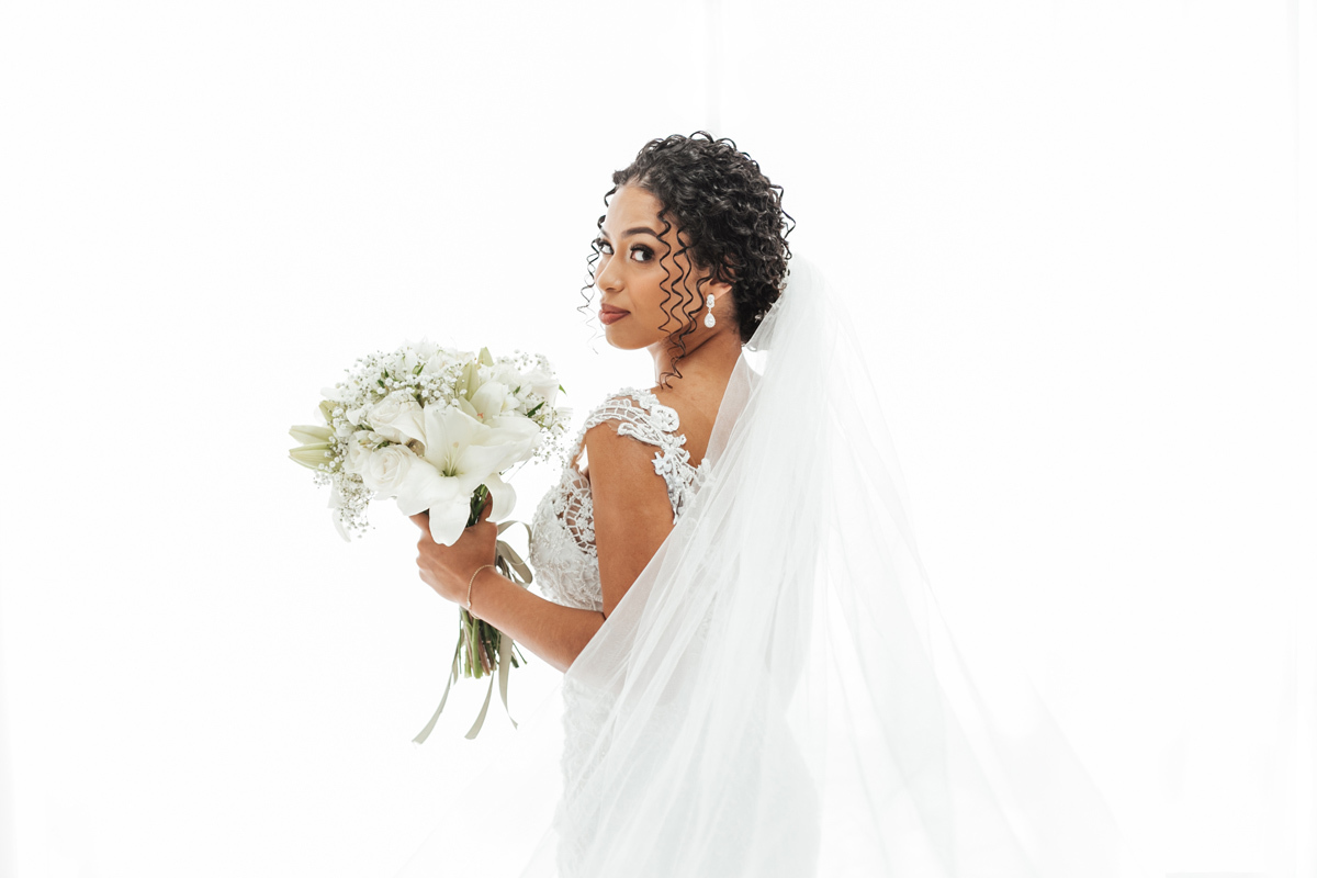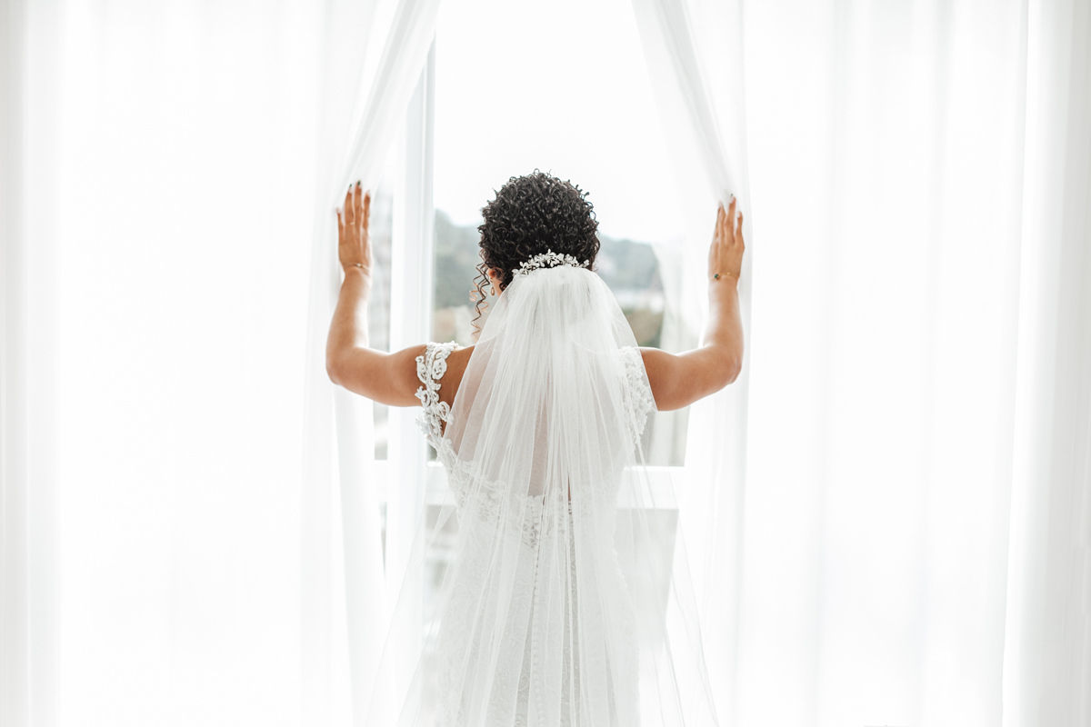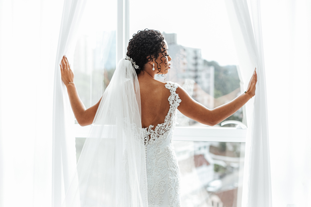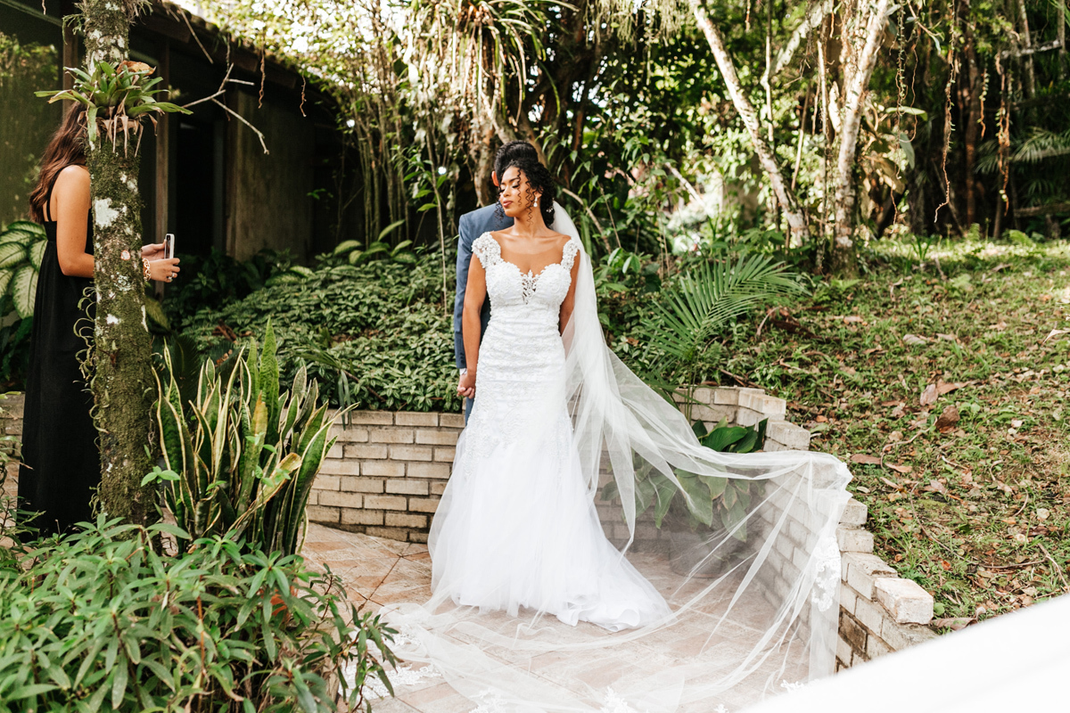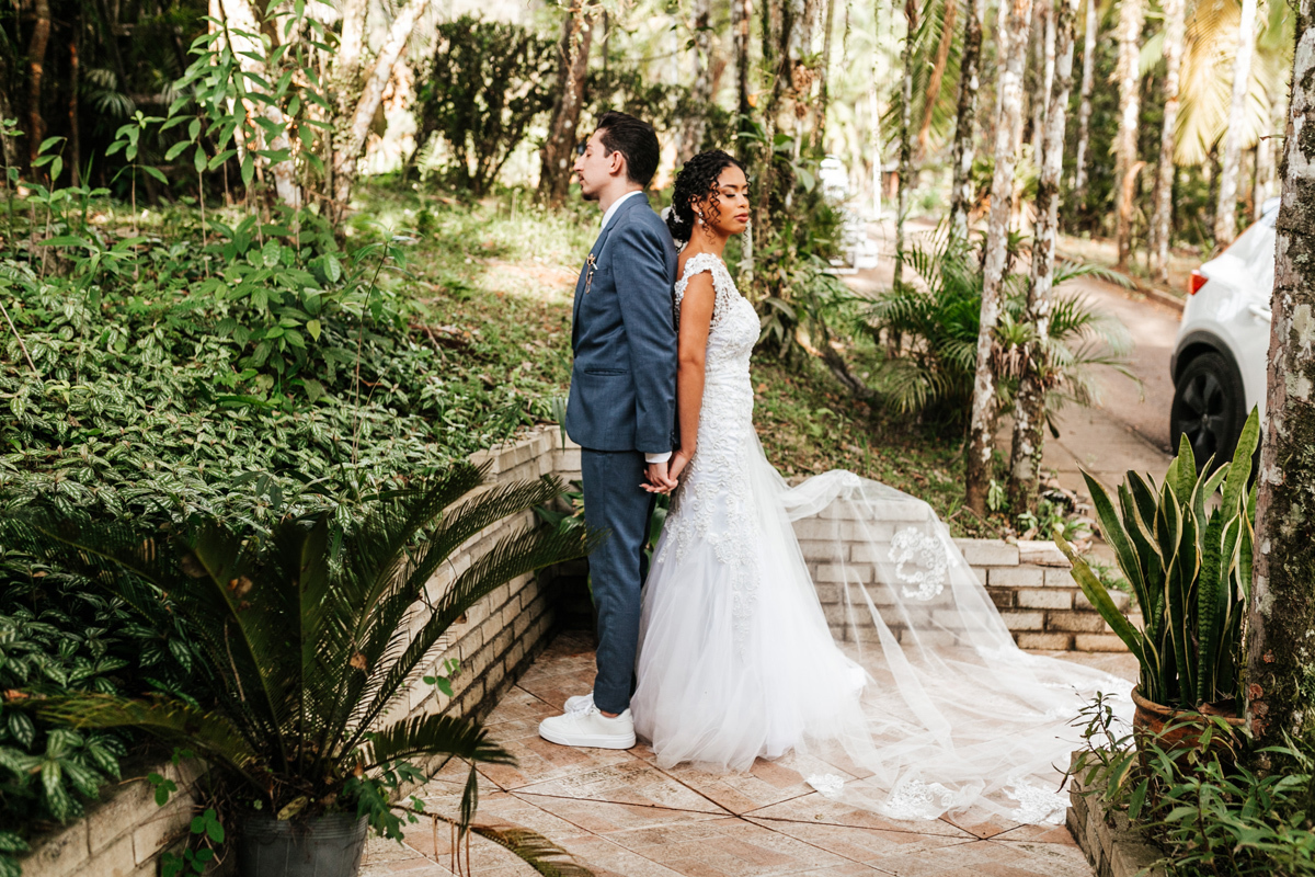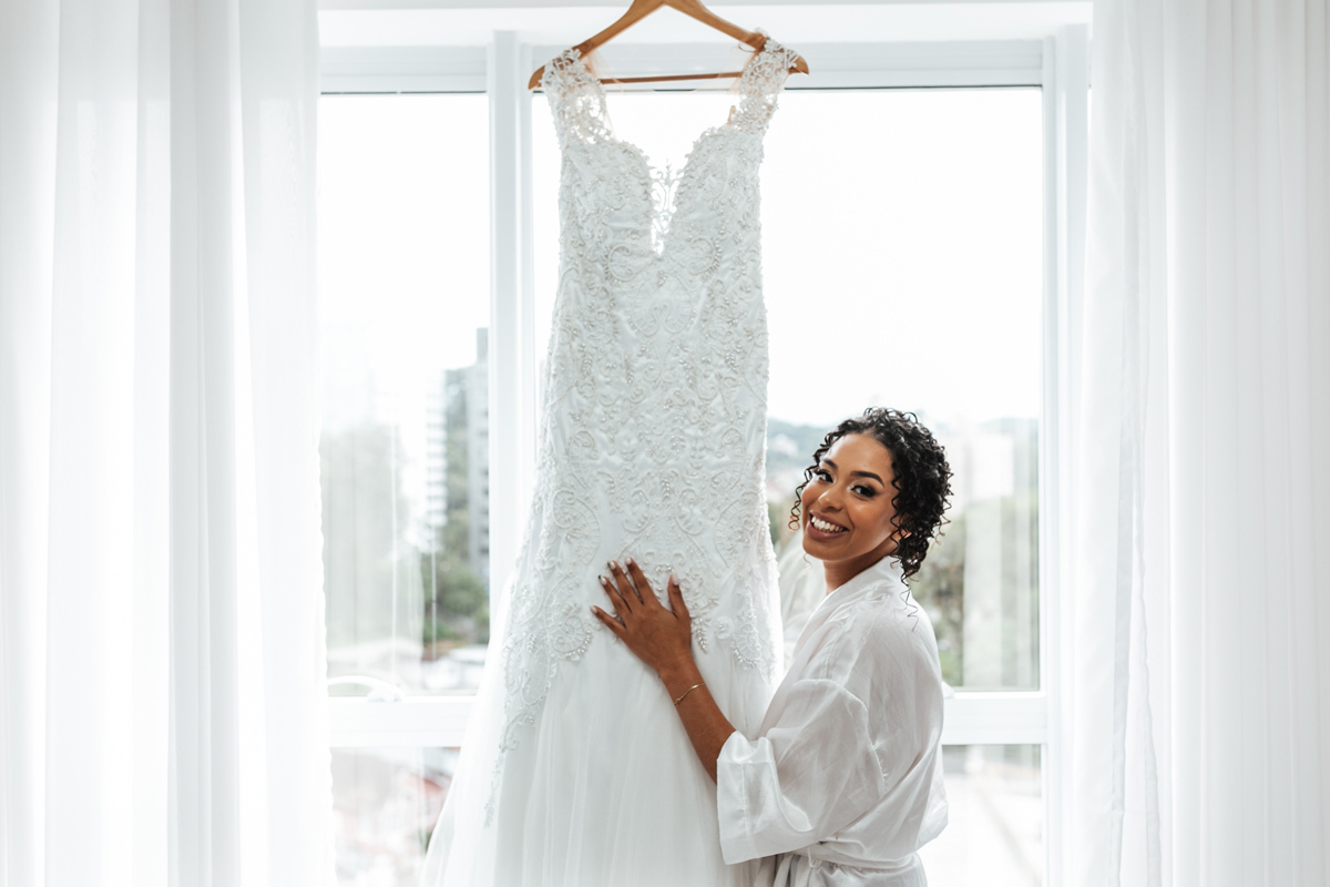 Um momento de pura felicidade, cheio de amor e ternura de quem acaba de realizar o sonho de casar, mostrando a alegria que transborda em seus sorrisos.