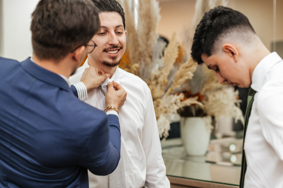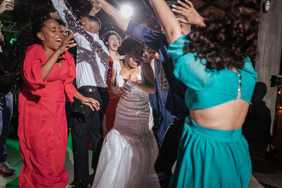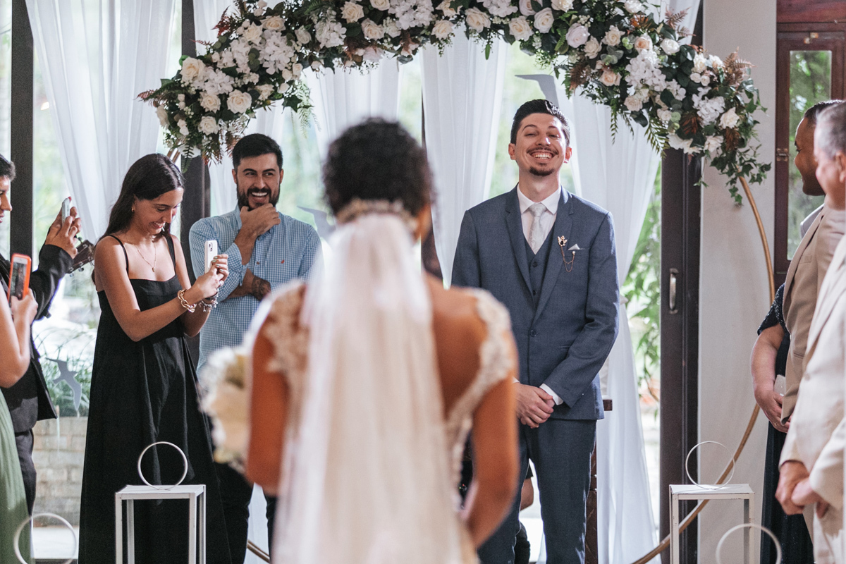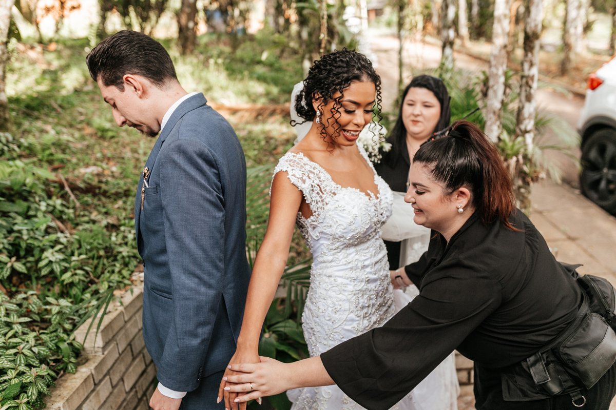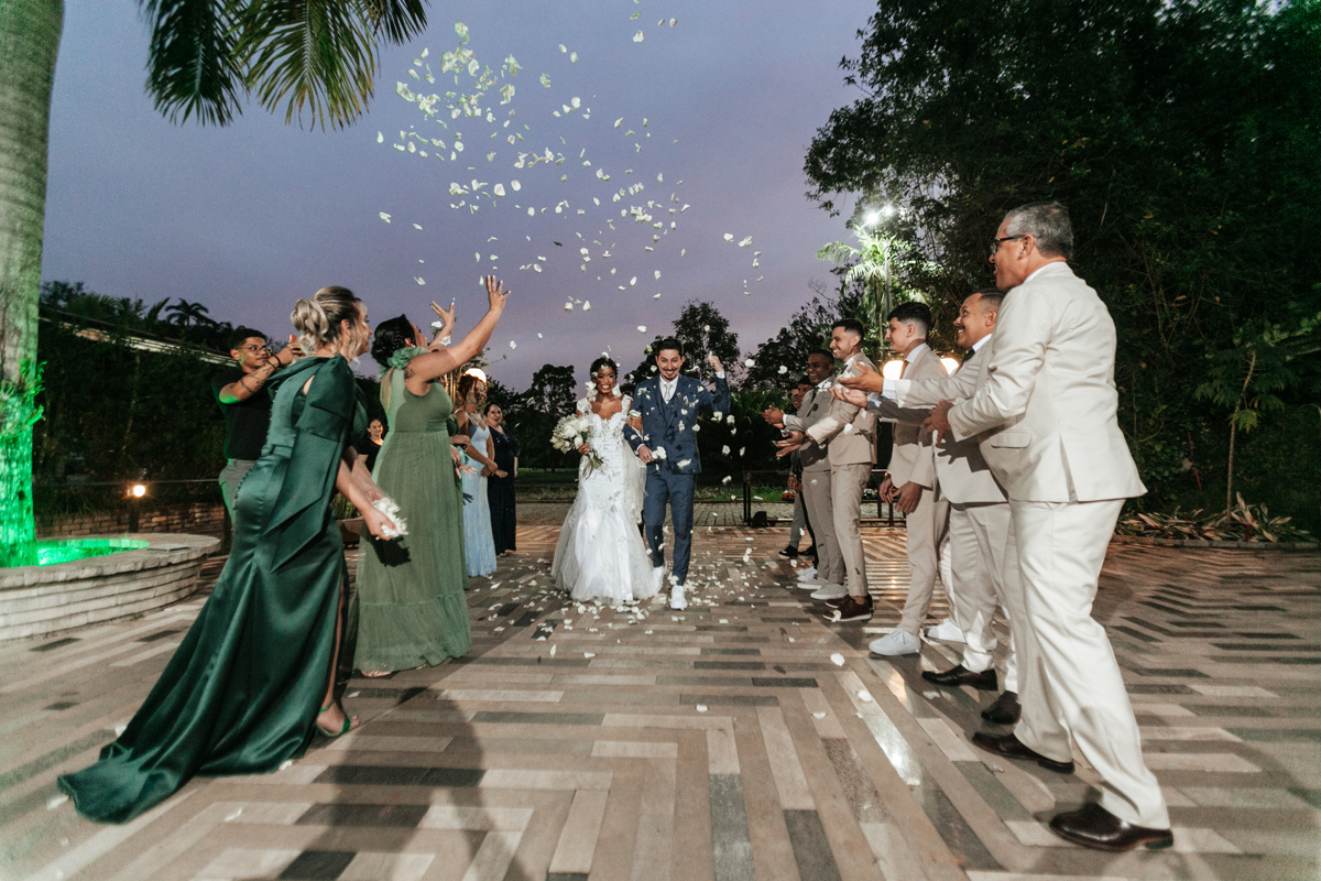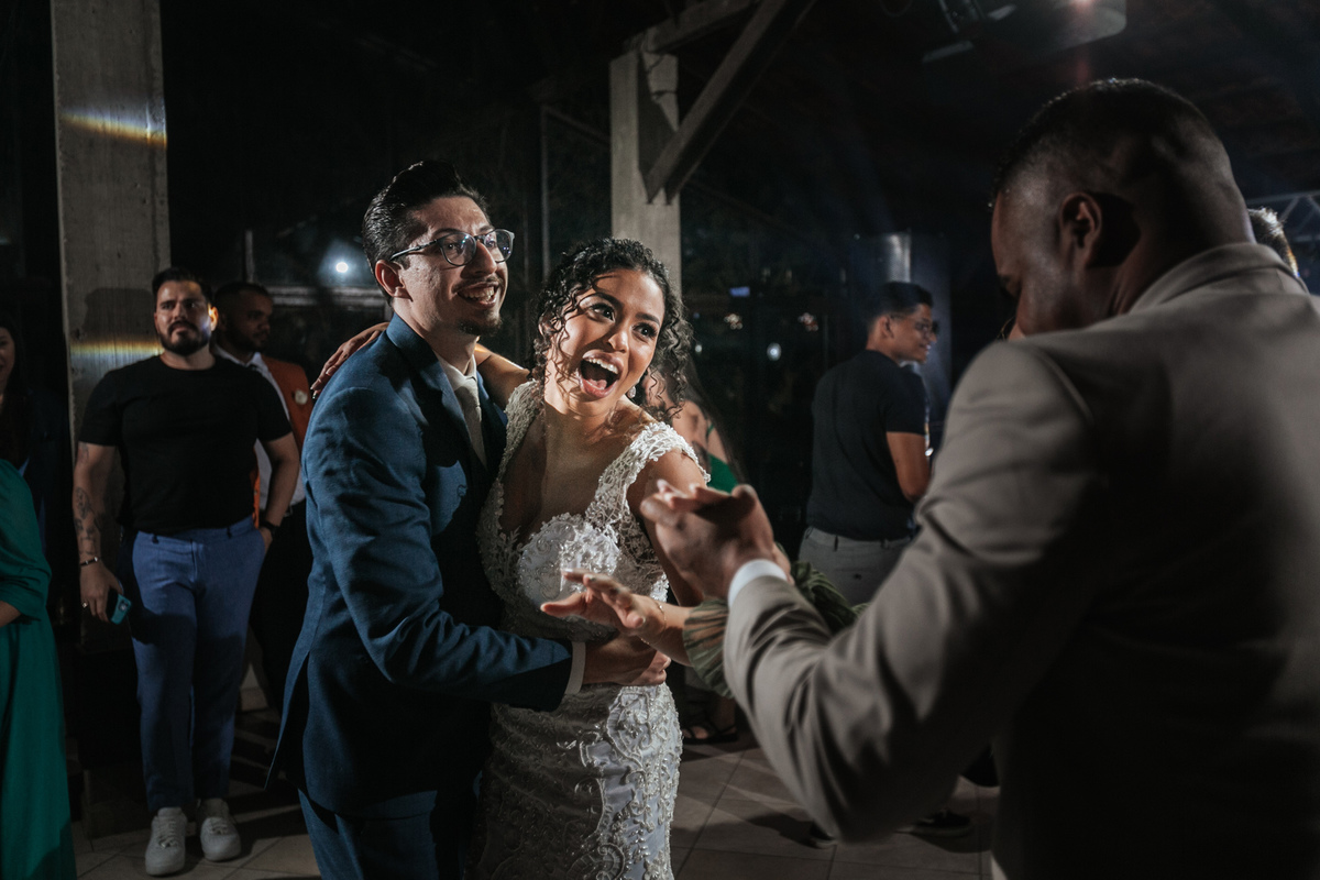 Um momento de pura felicidade, cheio de amor e ternura de quem acaba de realizar o sonho de casar, mostrando a alegria que transborda em seus sorrisos.